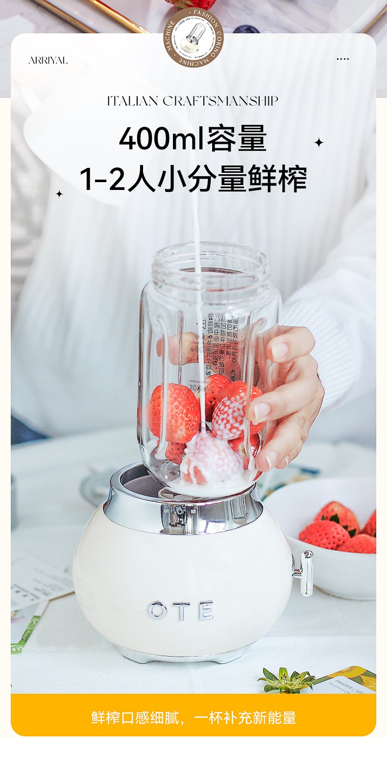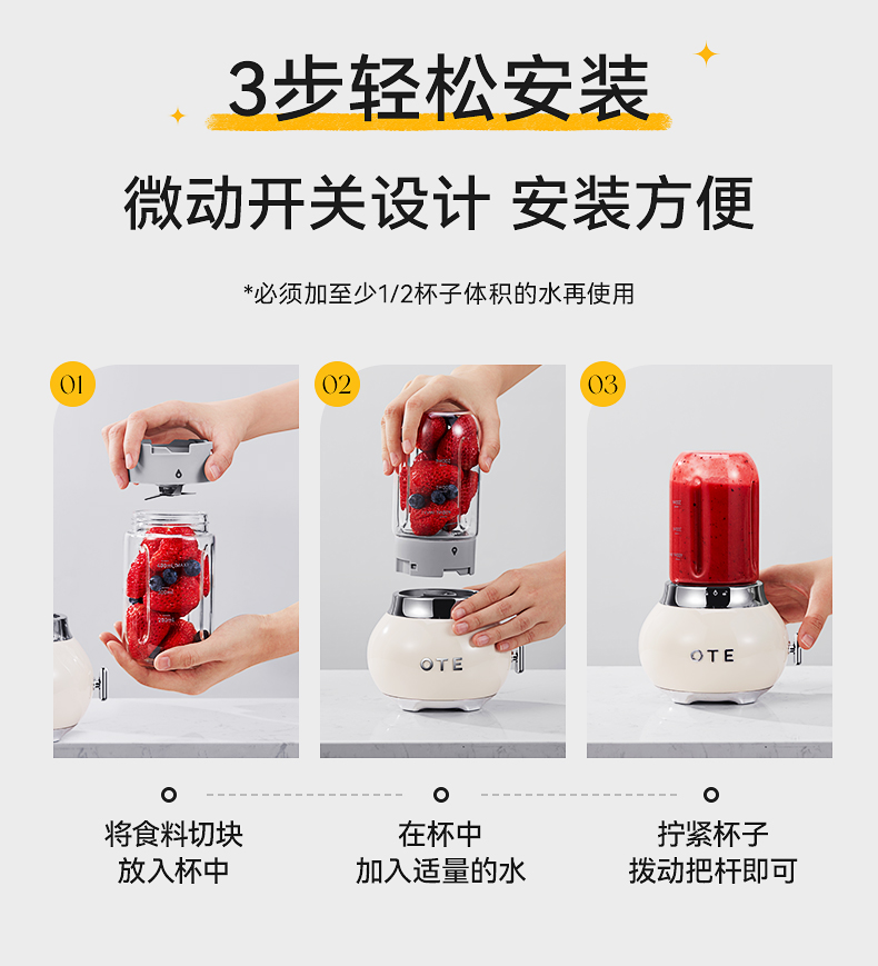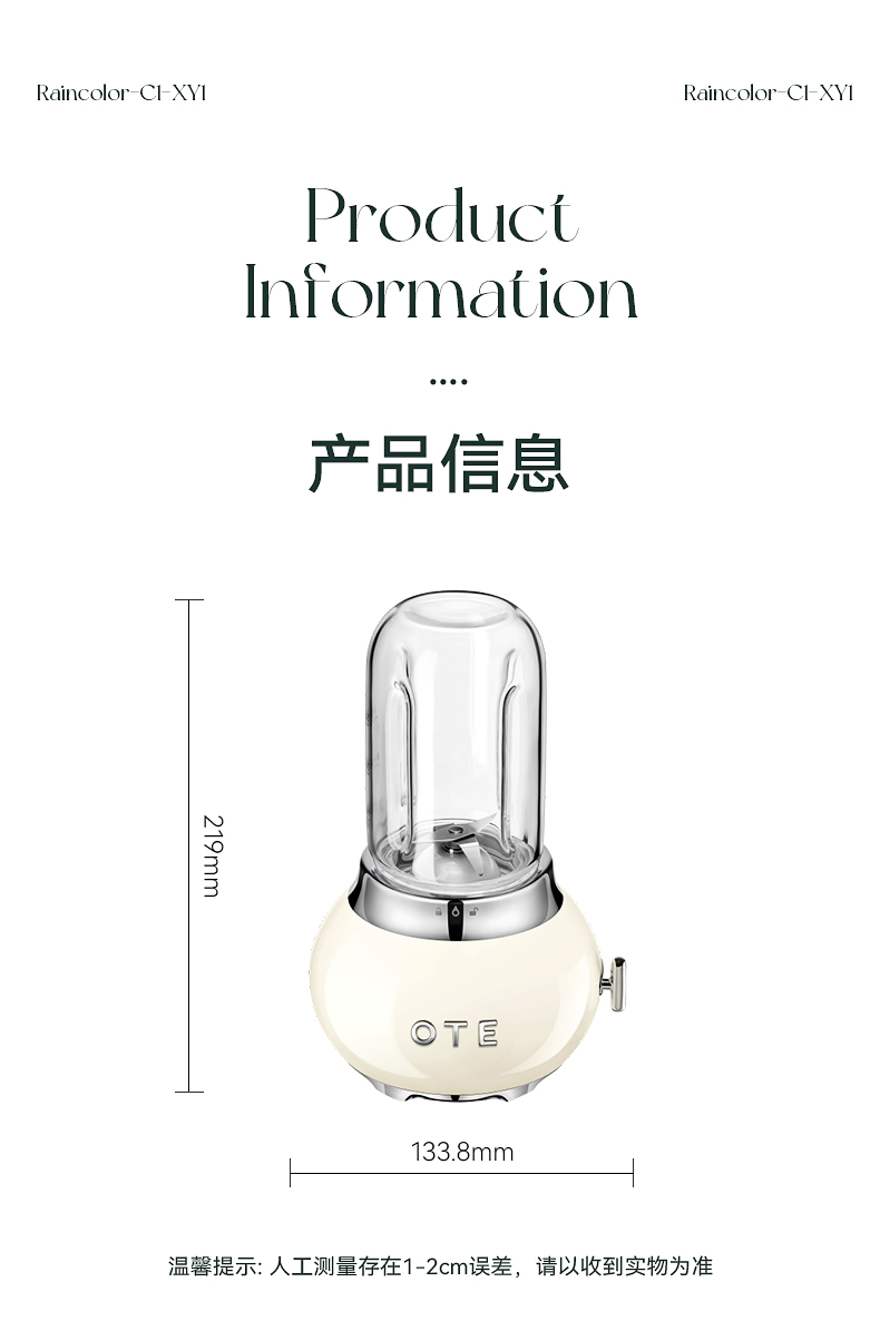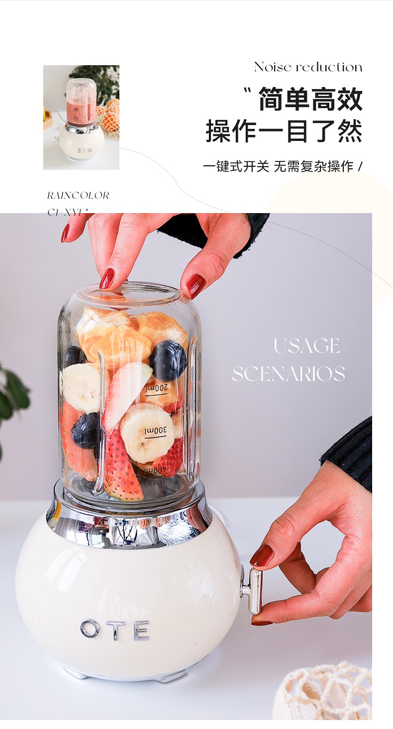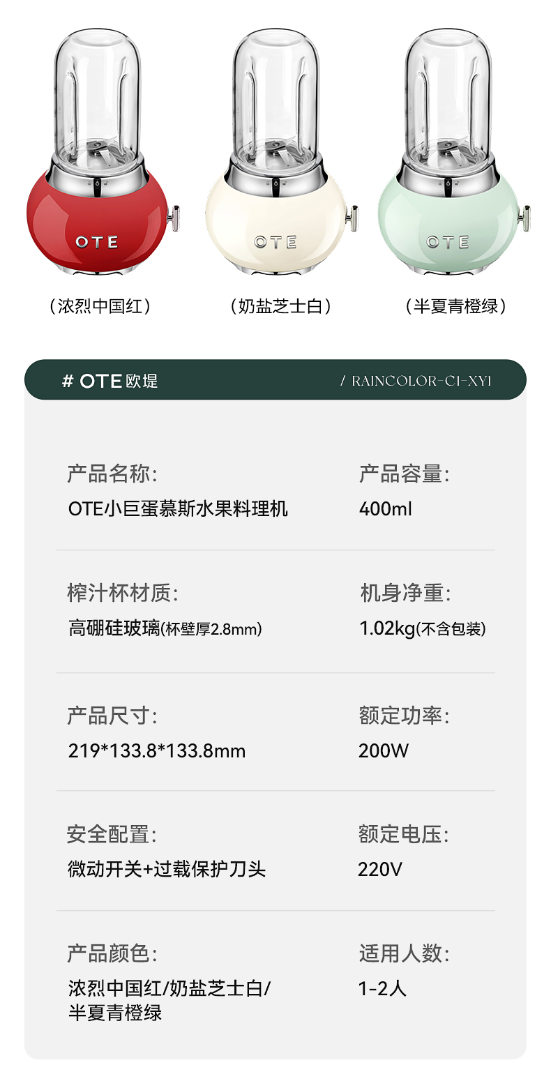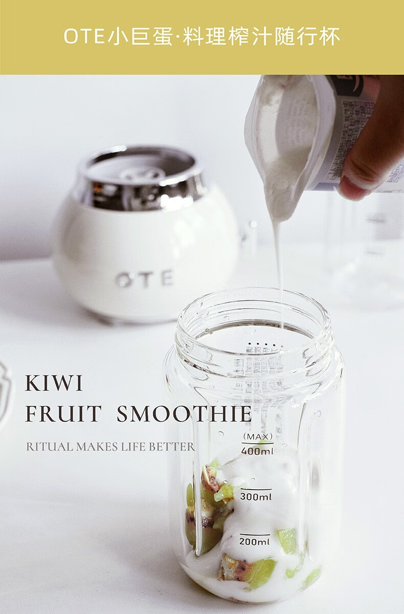 商品名称:(巨邦佑)BJ+OTE小巨蛋料理机 400ml 多色可选小型家用玻璃迷你果汁多功能自动果蔬便携电动奶昔榨汁杯礼物