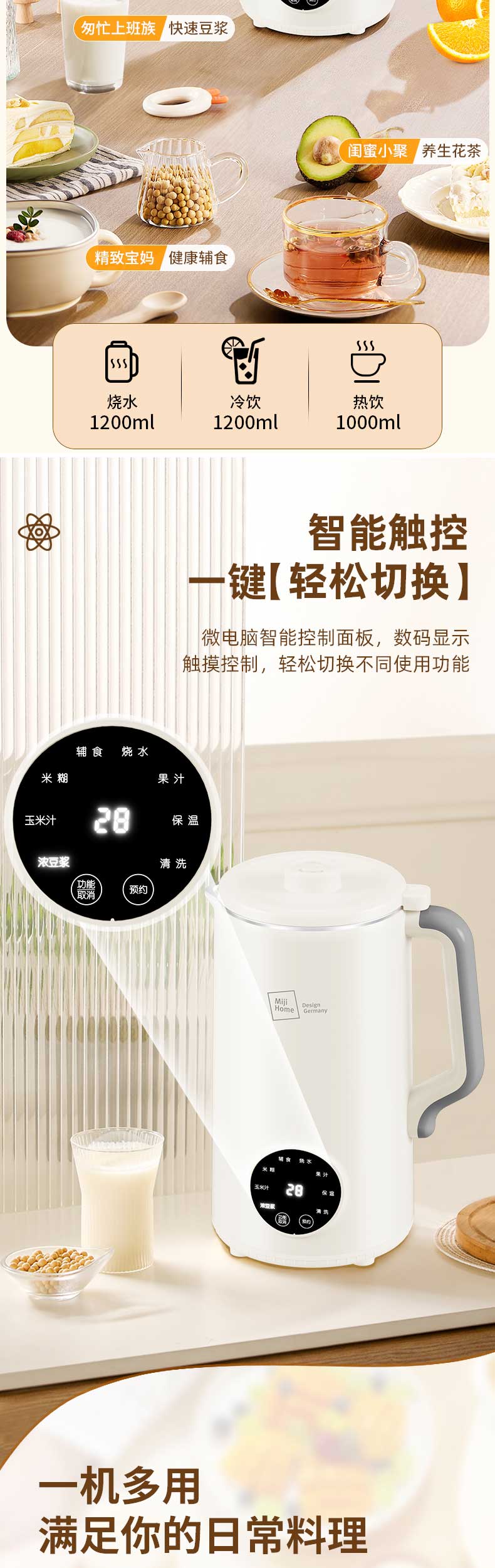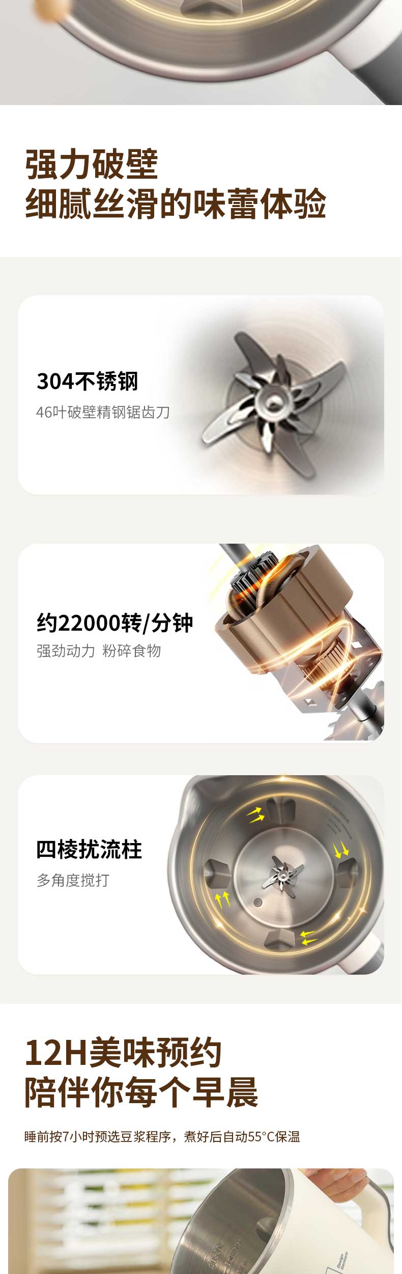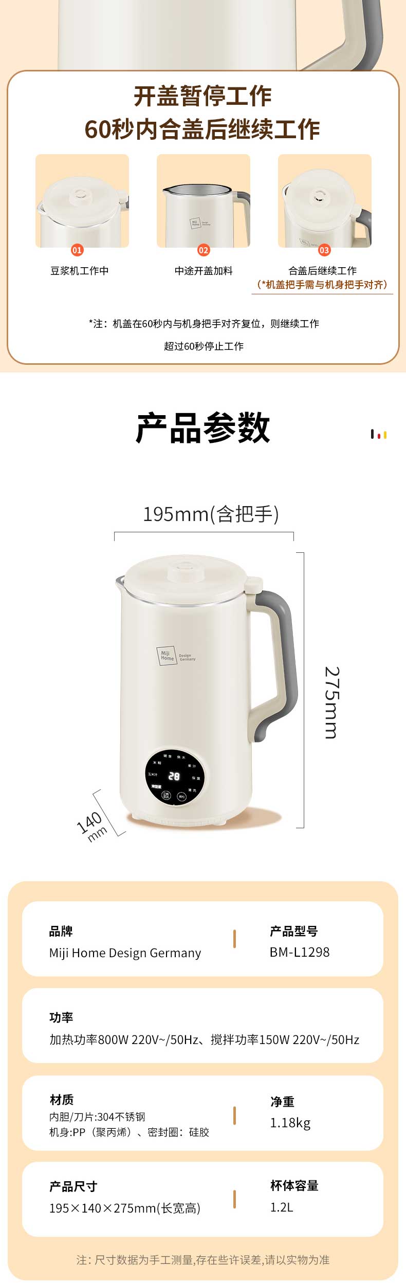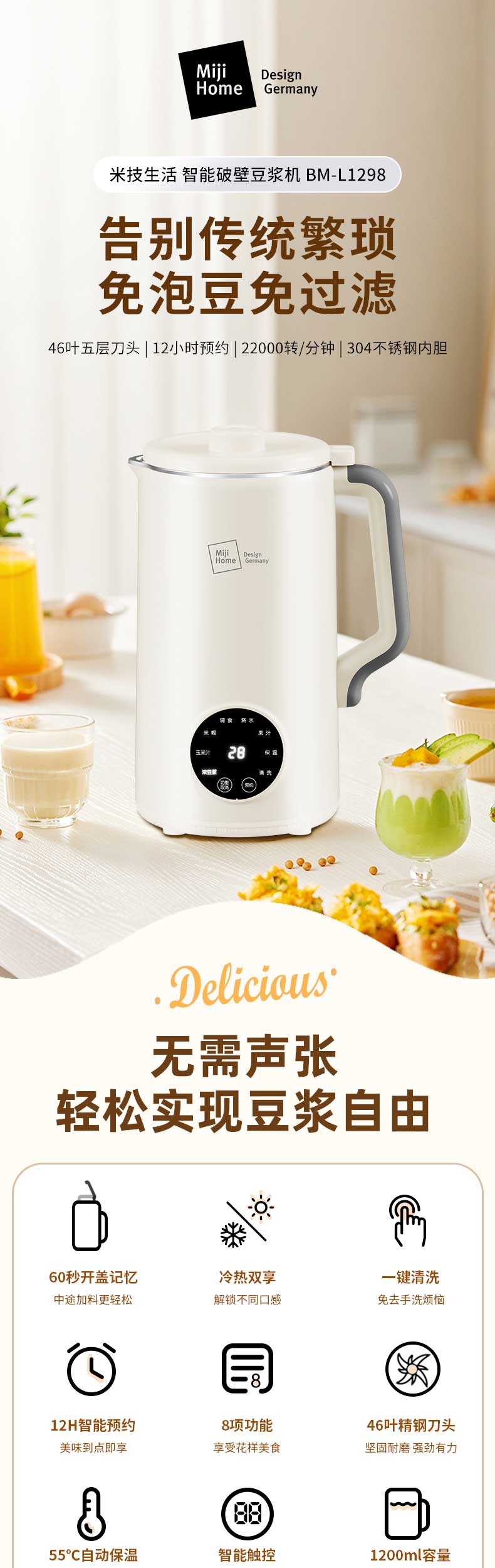 商品名称:(世星阳光)+米技(MIJI)智能破壁豆浆机 BM-L1298 告别传统繁琐免泡豆免过滤 五层46叶刀头 12小时预约 304不锈钢内胆
