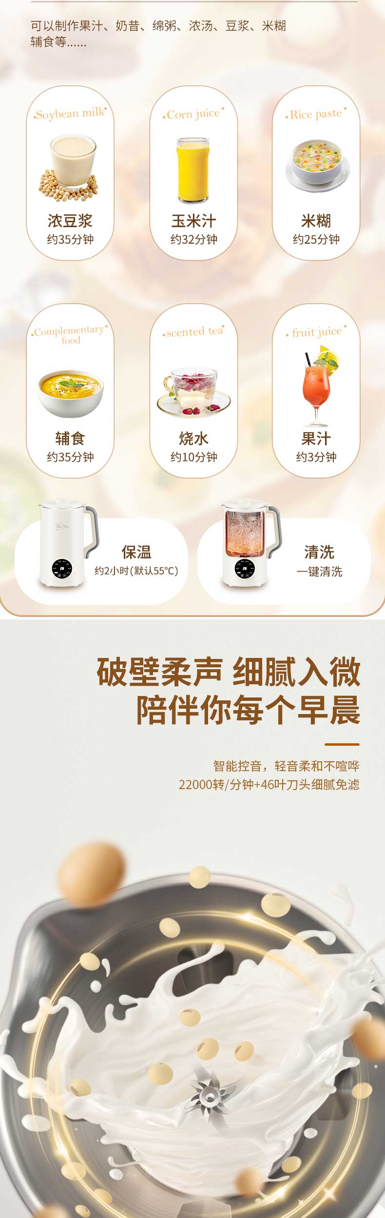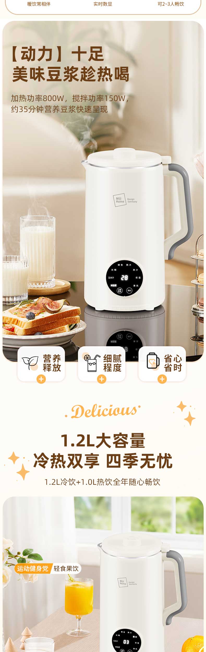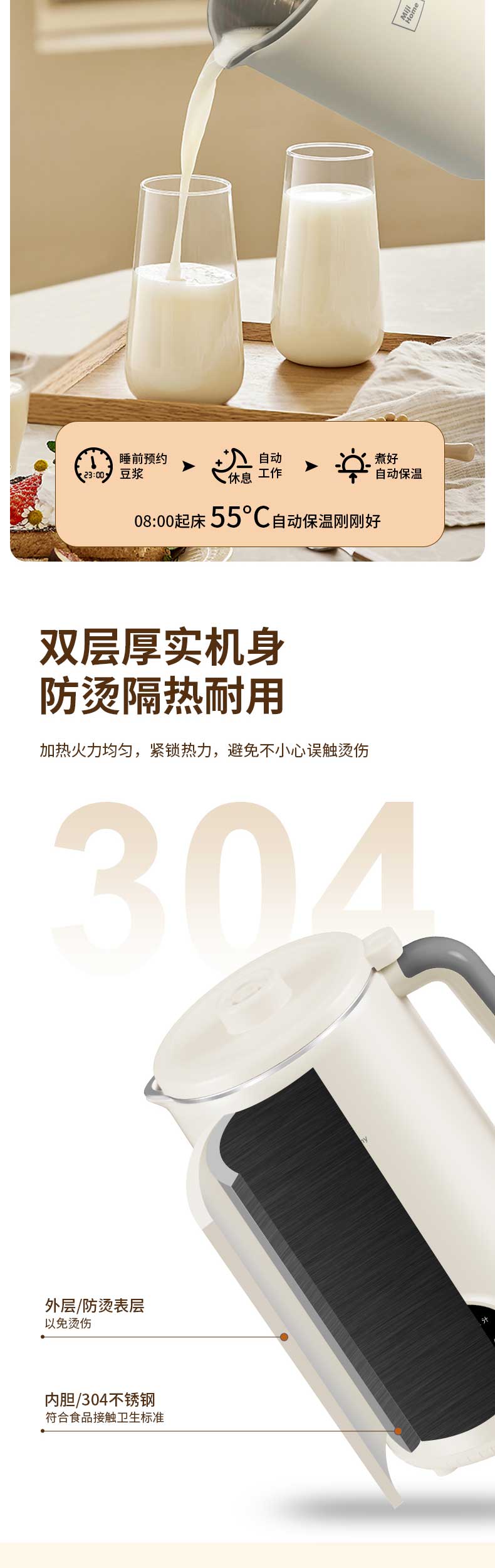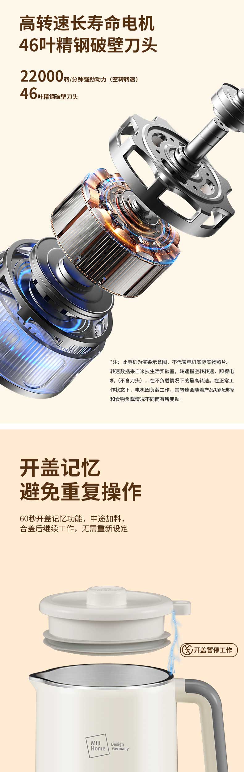 商品名称:(世星阳光)+米技(MIJI)智能破壁豆浆机 BM-L1298 告别传统繁琐免泡豆免过滤 五层46叶刀头 12小时预约 304不锈钢内胆