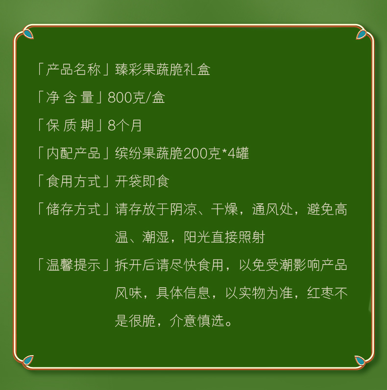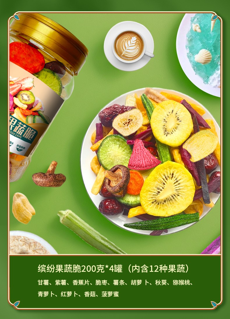 商品名称:(巨邦佑)T+ (yp)宁正丰臻彩果蔬脆礼盒混合水果脆香菇秋葵12种果蔬综合大礼包800g盒