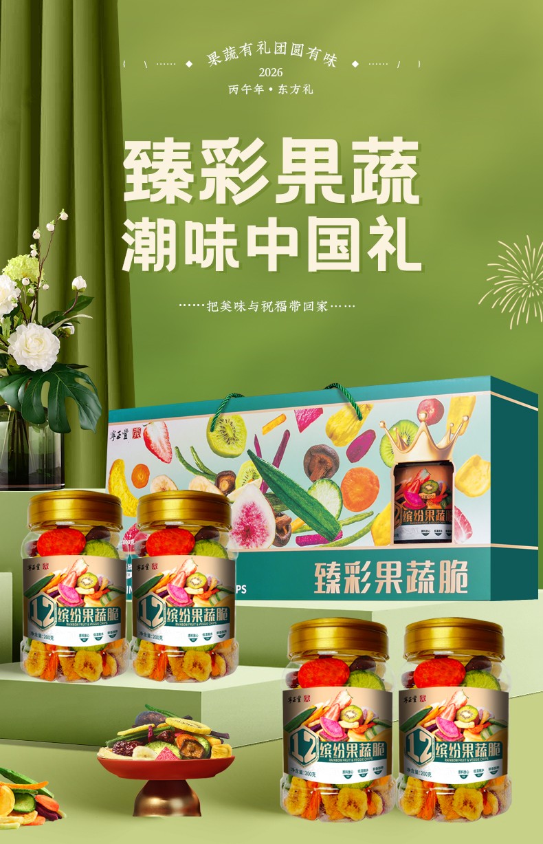 (巨邦佑)T+ (yp)宁正丰臻彩果蔬脆礼盒混合水果脆香菇秋葵12种果蔬综合大礼包800g盒