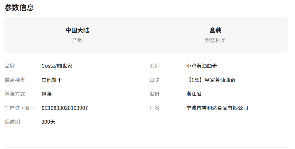 商品名称:(巨邦佑)BJ+COSTA 咖世家皇家黄油曲奇 60g 浓郁酥脆休闲零食点心下午茶饱腹解馋