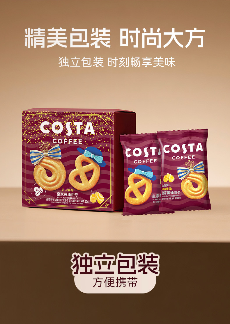 (巨邦佑)BJ+COSTA 咖世家皇家黄油曲奇 60g 浓郁酥脆休闲零食点心下午茶饱腹解馋