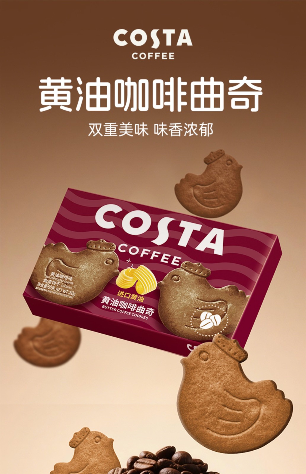 商品名称:(巨邦佑)BJ+COSTA 咖世家黄油咖啡曲奇 60g 浓郁酥脆休闲零食点心下午茶饱腹解馋