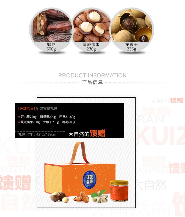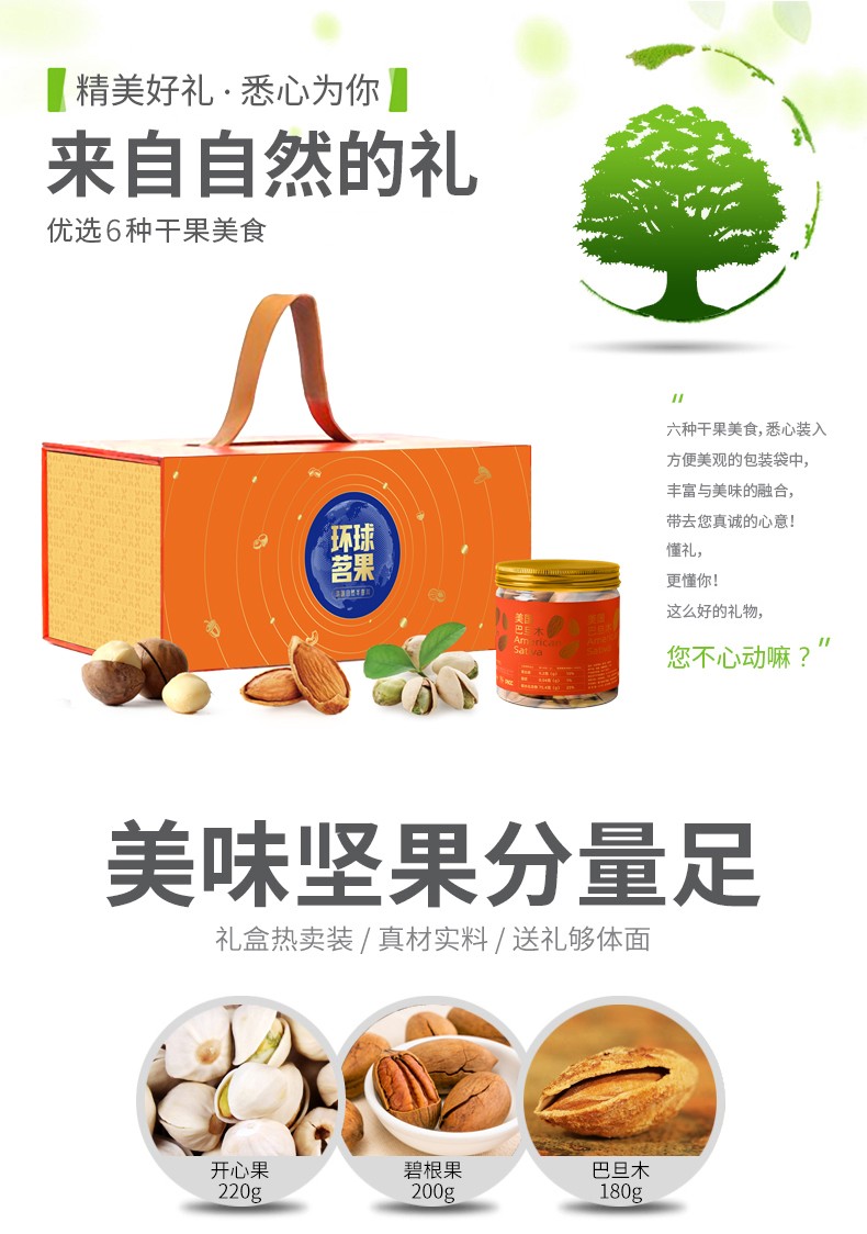 商品名称:(巨邦佑)R+半亩川环球茗果1666g 开心果碧根果椰枣坚果礼盒