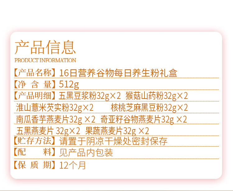 商品名称:(巨邦佑)BJ+燕之坊16日谷物每日养生粉礼盒 512g 代餐粉营养冲饮伴手礼团购福利新老交替发货