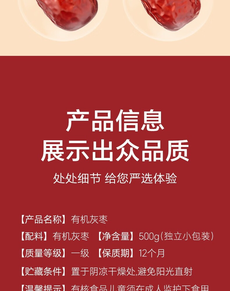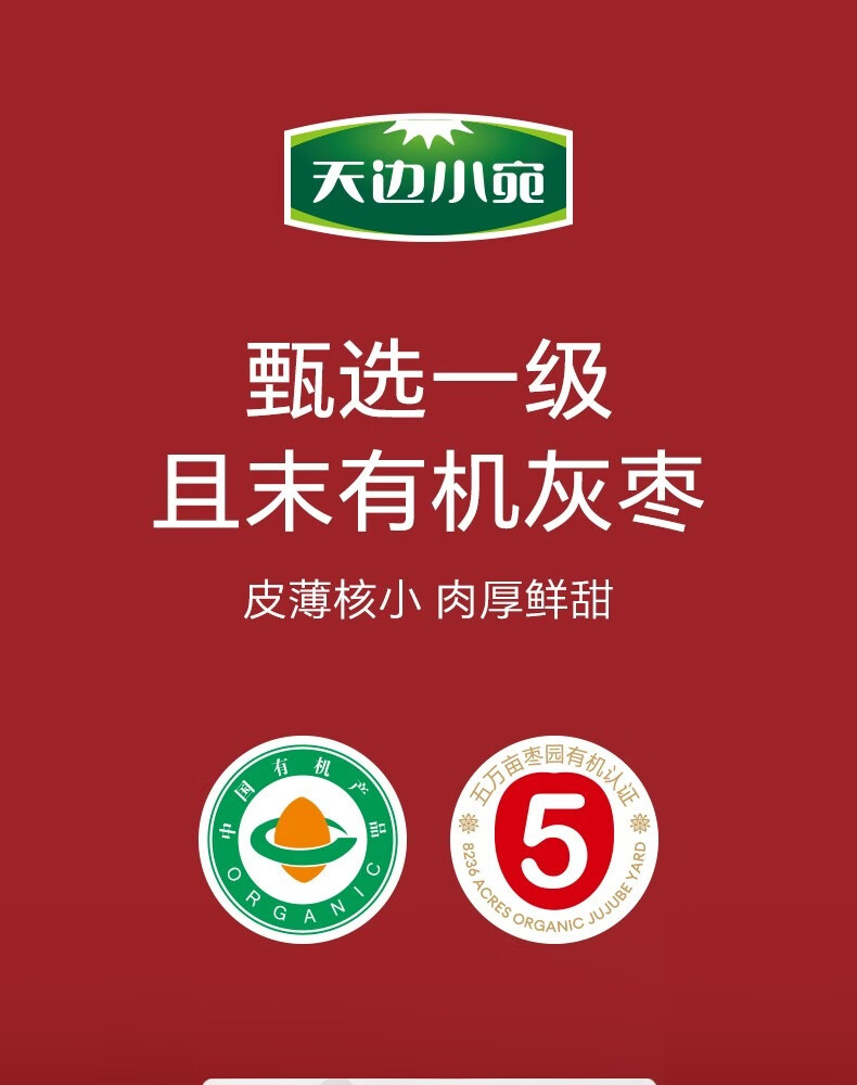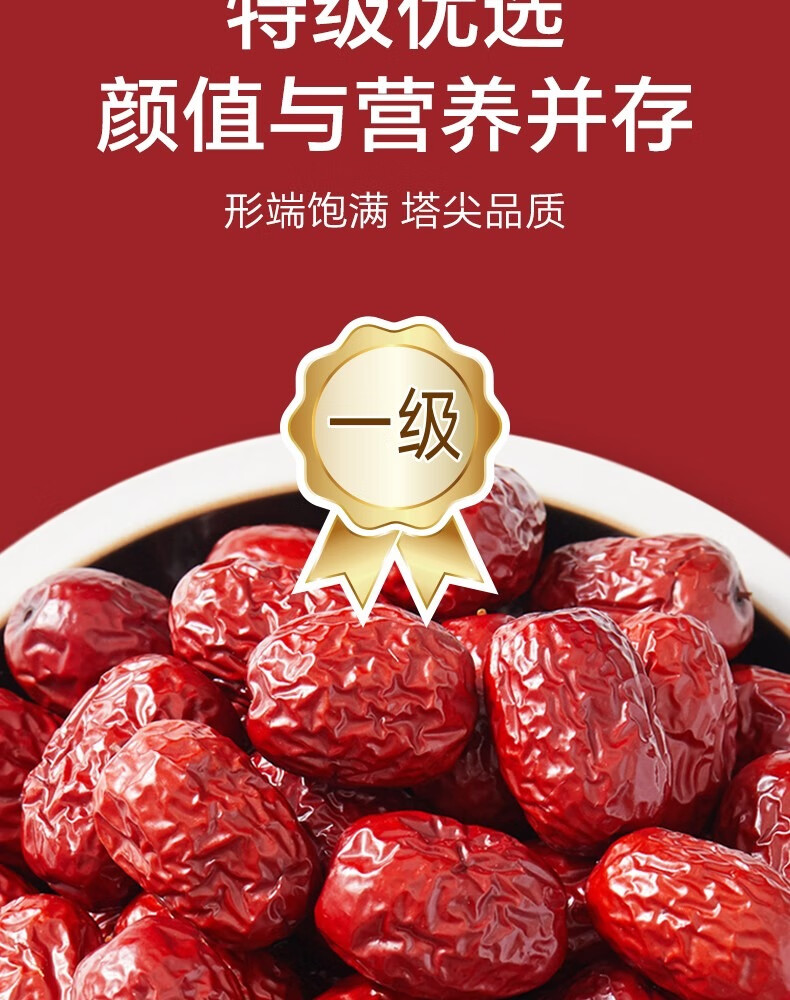 商品名称:(巨邦佑)BJ+天边小宛 一级有机且末灰枣500g 袋装煲汤泡茶煮粥零食枣子特产
