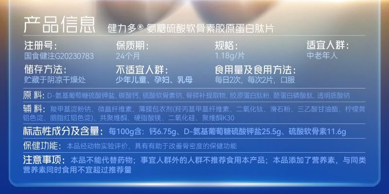 商品名称:(巨邦佑)BJ+汤臣倍健 健力多氨糖硫酸软骨素胶原蛋白肽片280片 中老年人 改善骨密度营养品